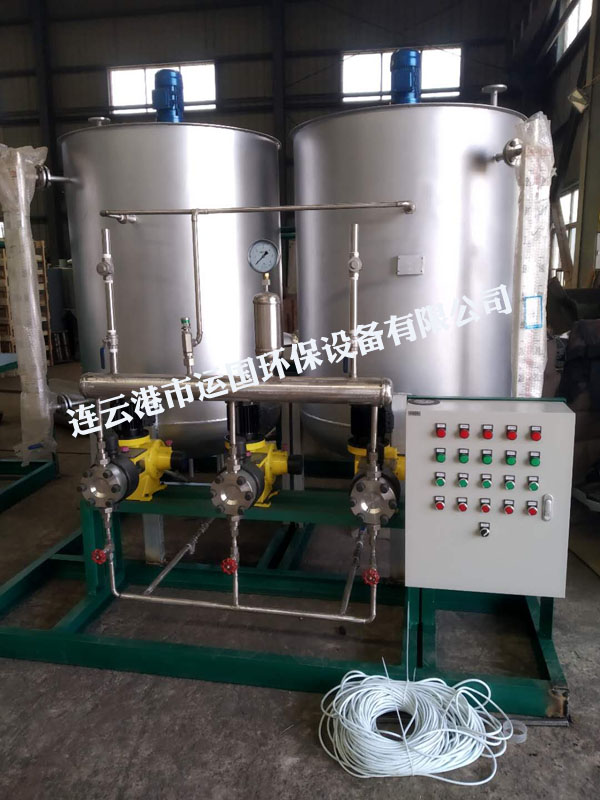 加藥裝置通過不同的工藝設計,精確配置各類固體和液體的化學藥品的溶液,再用計量泵準確投加,以達到各種設計要求。如除垢、除氧、混凝、加酸、加堿等。